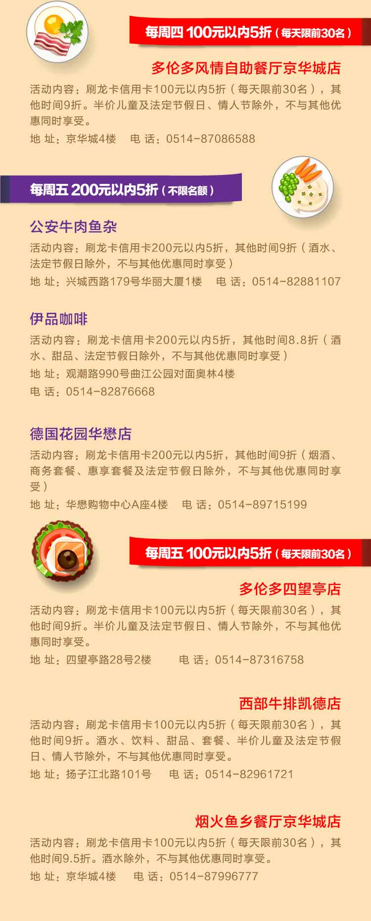 龙卡信用卡特惠2017年第1季(扬州)