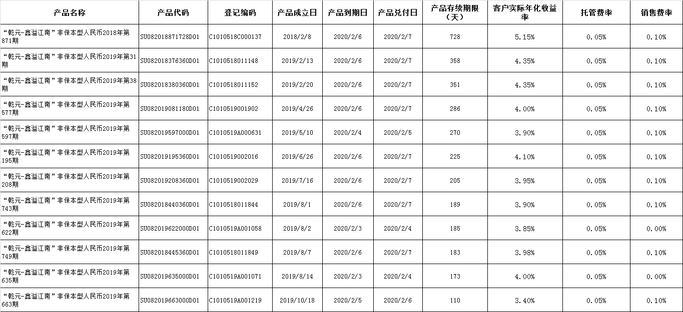 上述产品已按照说明书中关于资产的投资类型和比例的约定进行投资,所投资非标准化债权资产已进行披露,产品运作收益超出客户实际年化收益率、托管费率及销售费率的部分将作为产品的浮动管理费用,到期收益分配详见产品说明书。